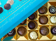 Handcrafted truffles infused with roasted Italian hazelnuts, and dusted with 24k edible gold flakes.